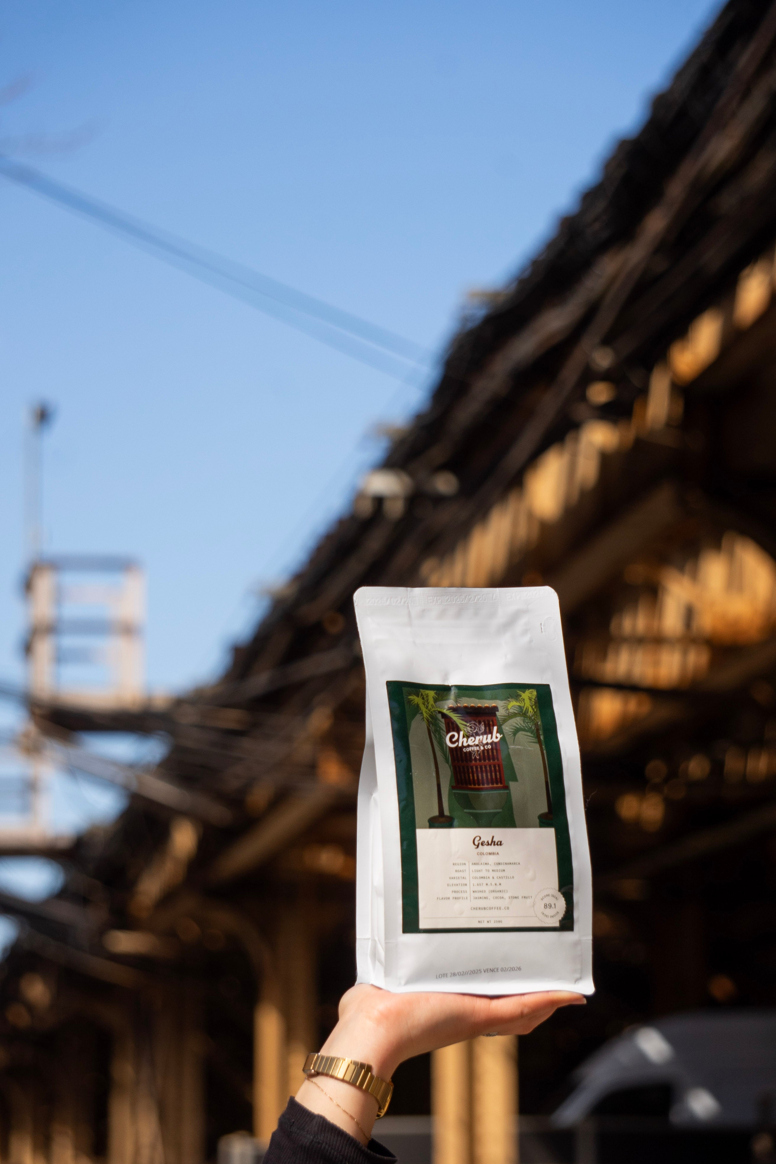 Grown in Colombia's high-altitude regions, Cherub Coffee's Gesha develops the exceptional clarity and aromatic intensity this variety is known for. The cool mountain air and rich Colombian soil slow the cherry's maturation, concentrating the flavors into something genuinely unlike any other coffee you will try.